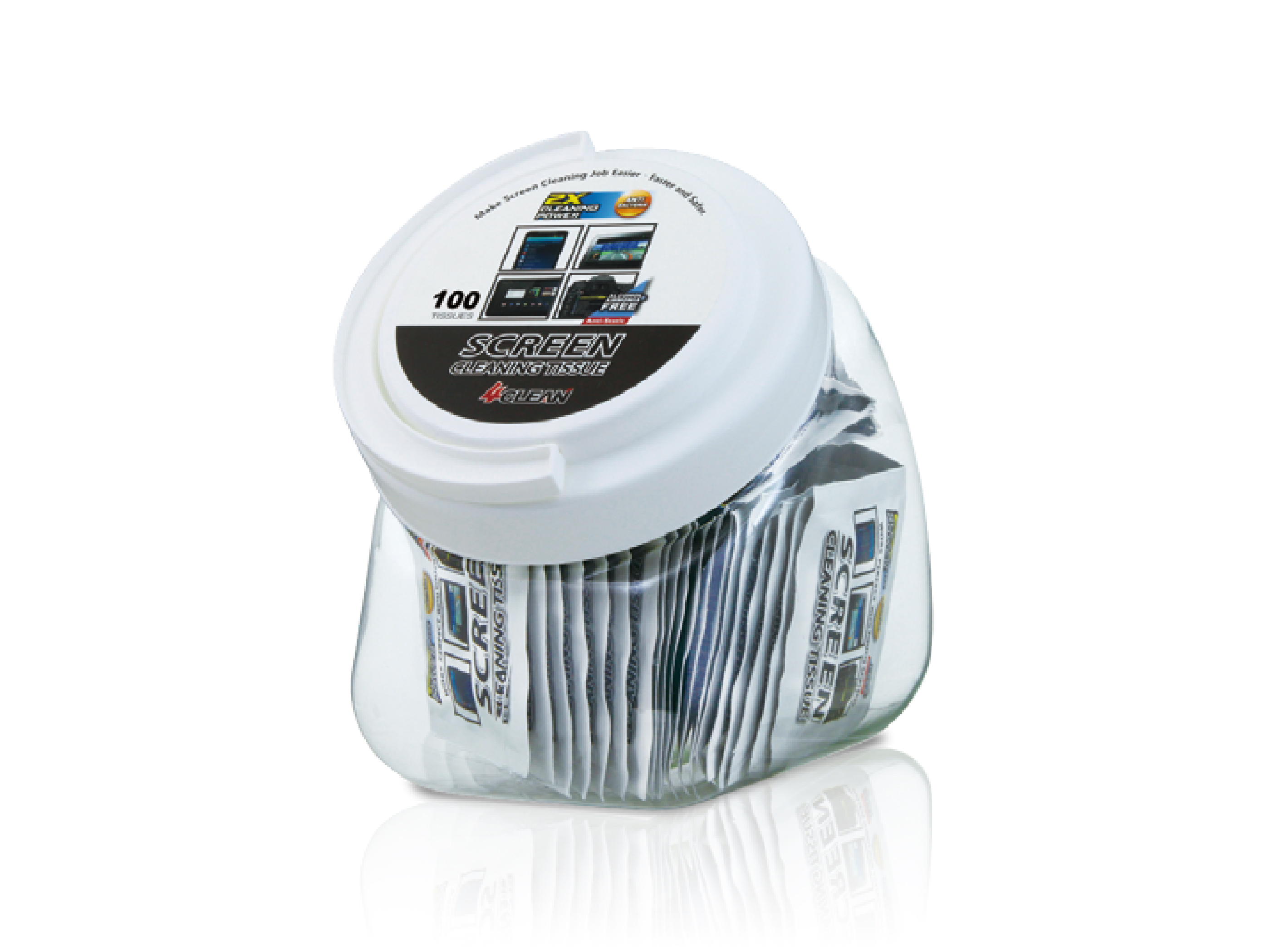 4CLEAN Pre-Moistened 2X Cleaning Power Screen Cleaning Tissue features our newly developed high-performance cleaning formula. It has passed the RoHS standard and SGS testing for its ability to prevent bacterial growth. Made from 100% wood pulp, the tissue leaves significantly less residual fiber after wiping compared to non-woven alternatives. In addition, the specially formulated solution dramatically reduces watermarks on screens after cleaning, ensuring a clear and streak-free finish.