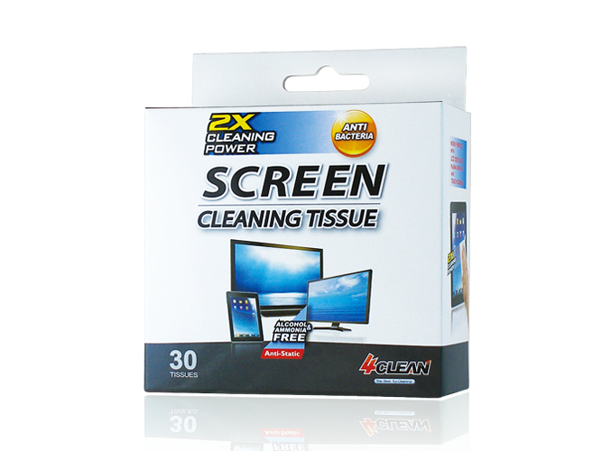 4CLEAN Pre-Moistened 2X Cleaning Power Screen Cleaning Tissue features our newly developed high-performance cleaning formula. It has passed the RoHS standard and SGS testing for its ability to prevent bacterial growth. Made from 100% wood pulp, the tissue leaves significantly less residual fiber after wiping compared to non-woven alternatives. In addition, the specially formulated solution dramatically reduces watermarks on screens after cleaning, ensuring a clear and streak-free finish.